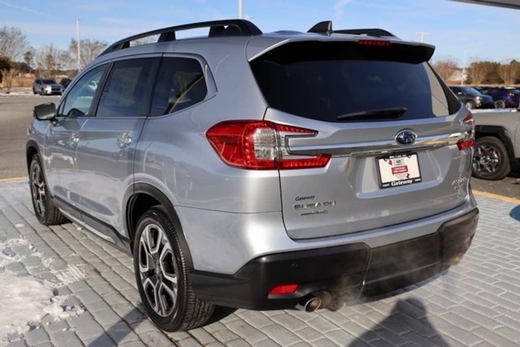 Ice Silver Metallic 2023 Subaru Ascent Limited AWD Lineartronic CVT 2.4L 4-Cylinder DOHC 16V * NAVIGATION, * SUNROOF / MOONROOF, PUSH BUTTON START, LOCAL TRADE, CLEAN CARFAX, * LEATHER, FACTORY WARRANTY, ONE OWNER, * AWD, * EYESIGHT, Apple CarPlay/Android Auto, 3rd Row Seat, Surround View Monitor+Harman Kardon Quantum Logic Surround Sound Speaker System, Audio System: SUBARU STARLINK 11.6-inch Multimedia, Blind Spot Detection, Rear Cross Traffic Alert.