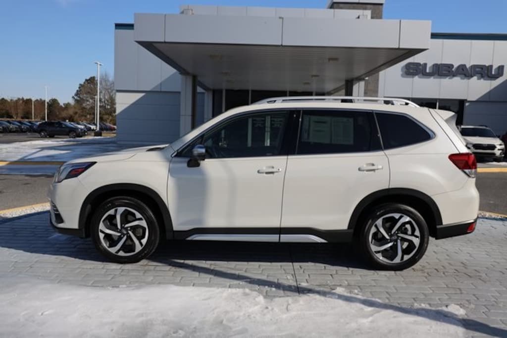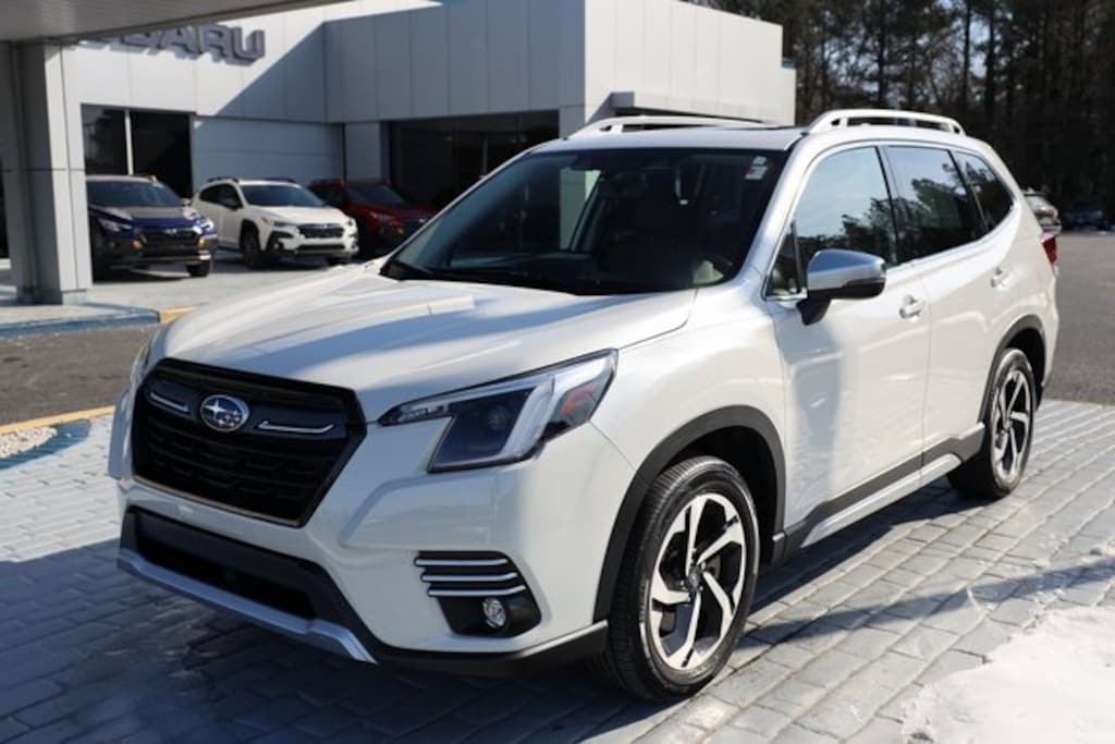 Crystal White Pearl 2023 Subaru Forester Touring AWD Lineartronic CVT 2.5L 4-Cylinder DOHC 16V * NAVIGATION, * SUNROOF / MOONROOF, PUSH BUTTON START, LOCAL TRADE, CLEAN CARFAX, FACTORY WARRANTY, ONE OWNER, * EYESIGHT, * SADDLE BROWN LEATHER, Apple CarPlay/Android Auto, Auto-Dimming Mirror with Compass and HomeLink, Exterior Auto Dimming Mirror, Blind Spot Detection, Rear Cross Traffic Alert.