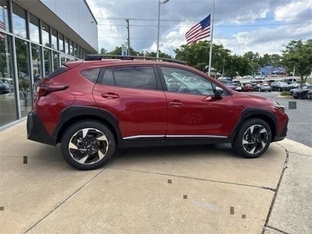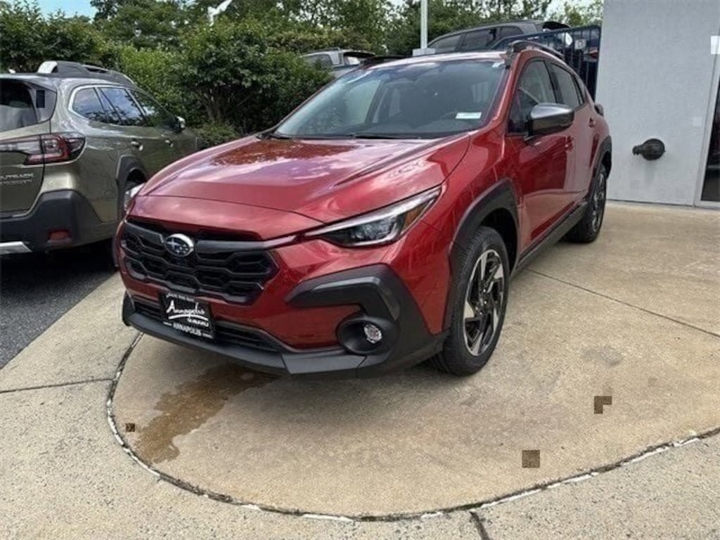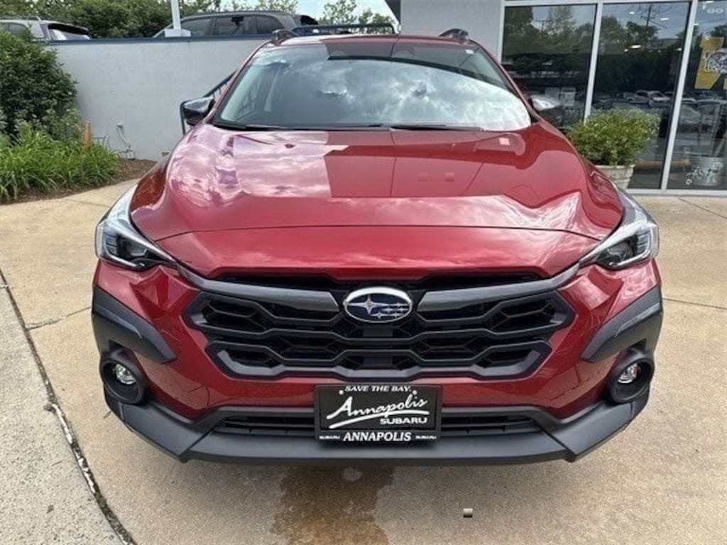 Here at Annapolis Subaru we have a brand new Lithium Red Pearl on Black 2025 Subaru Crosstrek Limited for sale (see dealer for pricing). This Subaru has the 2.5L H-4 CVT automatic AWD REGULAR unleaded powertrain that returns 26 mpg city/29 mpg combined/33 mpg highway. The convenience features are 1-touch down, 1-touch up, Adaptive Cruise Control, air conditioning, auto-dimming rearview mirror, automatic temperature control, driver door bin, driver vanity mirror, emergency communication system with Star-Link Safety and Security (Subscription Required), front beverage holders, front dual zone A/C, garage door transmitter (Home-Link), illuminated entry, moonroof sunshade (manual), overhead console, passenger door bin, passenger vanity mirror, power moonroof, power windows, rear beverage holders, rear door bins, remote engine start with smart device only (subscription required), remote keyless entry, telescoping steering wheel and a tilt steering wheel. The suspension and handling features are alloy wheels, four wheel independent suspension, front and rear anti-roll bars, 225/55VR18.0 front and rear tires, power steering, speed-sensing steering and 18 inch wheels. The entertainment features are 1st row LCD monitors (2), AM/FM radio (Sirius XM), 11.6 inch primary LCD size screen, radio data system, satellite radio trial duration with new vehicle purchase of 4 months, smart device integration (Star-Link/Apple CarPlay/Android Auto), Harman/Kardon speakers (10), steering wheel mounted audio controls and wireless phone connectivity (Bluetooth). The warranties are 36 months/36,000miles for the basic warranty, 60 months/ unlimited mile distance for the corrosion perforation warranty, 60 months/60,000miles for the powertrain warranty and 36 months/36,000miles for the roadside assistance coverage. The seats and trim features are front bucket seats with a center armrest, heated front seats, leather shift knob, leather steering wheel, max seating capacity (5), power 2-way lumbar support, power driver seat, rear seat center armrest, rear split foldable bench seat and a leather seat upholstery. The off road capabilities are 18 degrees for the approach angle, 30 degrees for the departure angle, 8.7 inches for the ground clearance and 20 degrees for the ramp breakover angle. The body exterior features are auto-dimming door mirrors, body colored bumpers, heated/power/turn signal integrated door mirrors and a spoiler. This Crosstrek has a towing capacity of 1,500lbs. The lighting, visibility and instrumentation features are analog gauges, auto high-beam headlights, Blind Spot Detection (BSD) warning, compass, rear exterior parking camera, front fog lights, front reading lights, fully automatic headlights, lane departure (active EyeSight integrated Lane Keep Assist active), low tire pressure warning, outside temperature display, rear window defroster, rear window wiper, tachometer, trip computer and variably intermittent wipers. The safety and security features are 4 wheel disc brakes, ABS brakes, adjustable head restraints (driver and passenger w/tilt), anti-whiplash front head restraints, brake assist, dual front and side impact airbags, electronic stability, Eye-Sight integrated front Pre-Collision Braking mitigation, front pedestrian detection (prevention), ignition disable, knee airbag, occupant sensing airbag, overhead airbag, panic alarm, perimeter/approach lights, Reverse Automatic Braking (RAB) rear collision mitigation, security system, tracker system with Star-Link Safety and Security (Subscription Required) and traction control.
