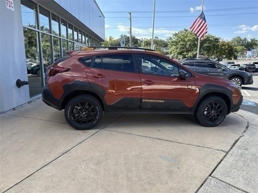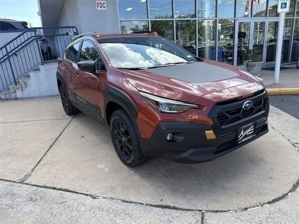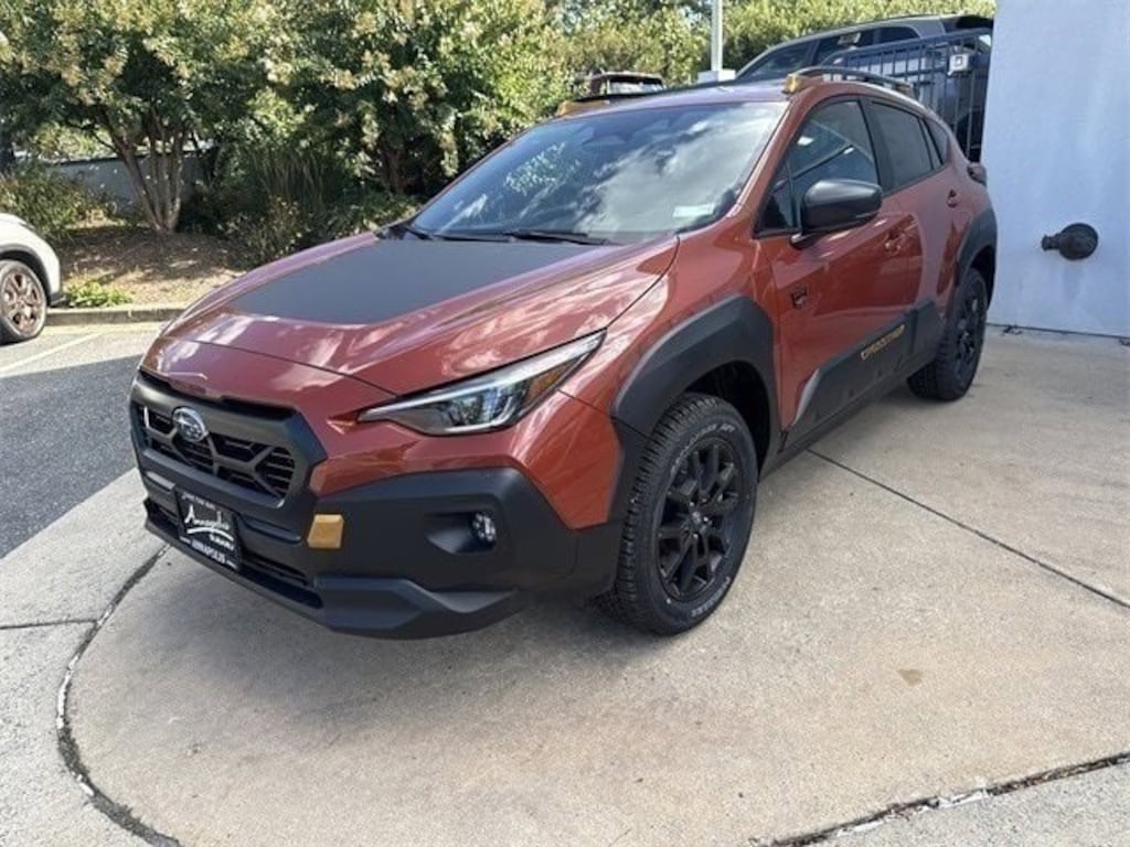 Here at Annapolis Subaru we have a brand new Sun Blaze Pearl on Black 2025 Subaru Crosstrek Wilderness for sale (see dealer for pricing). This Subaru has the 2.5L H-4 CVT automatic AWD REGULAR unleaded powertrain that returns 25 mpg city/27 mpg combined/29 mpg highway. The convenience features are 1-touch down, 1-touch up, Adaptive Cruise Control, air conditioning, auto-dimming rearview mirror, automatic temperature control, driver door bin, driver vanity mirror, emergency communication system with Star-Link Safety and Security (Subscription Required), front beverage holders, front dual zone A/C, garage door transmitter (Home-Link), illuminated entry, moon roof sunshade (manual), overhead console, passenger door bin, passenger vanity mirror, power moon roof, power windows, rear beverage holders, rear door bins, remote engine start with smart device only (subscription required), remote keyless entry, telescoping steering wheel and a tilt steering wheel. The suspension and handling features are alloy wheels, four wheel independent suspension, front and rear anti-roll bars, 225/60HR17.0 front and rear tires, power steering, speed-sensing steering, All Terrain tires and 17 inch wheels. The entertainment features are 1st row LCD monitors (2), AM/FM radio (Sirius XM), 11.6 inch primary LCD size screen, radio data system, satellite radio trial duration with new vehicle purchase of 4 months, smart device integration (Star-Link/Apple CarPlay/Android Auto), Harman/Kardon speakers (10), steering wheel mounted audio controls and wireless phone connectivity (Bluetooth). The warranties are 36 months/36,000miles for the basic warranty, 60 months/ unlimited mile distance for the corrosion perforation warranty, 60 months/60,000miles for the powertrain warranty and 36 months/36,000miles for the roadside assistance coverage. The seats and trim features are front bucket seats with a center armrest, heated front seats, leather shift knob, leather steering wheel, max seating capacity (5), power 2-way driver lumbar support, power driver seat, rear seat center armrest, rear split foldable bench seat and a leatherette Wilderness StarTex seat upholstery. The off road capabilities are 20 degrees for the approach angle, 33 degrees for the departure angle, 9.3 inches for the ground clearance and 21 degrees for the ramp breakover angle. The body exterior features are auto-dimming door mirrors, body colored bumpers, heated/power/turn signal integrated door mirrors and a spoiler. This Crosstrek has a towing capacity of 3,500lbs. The lighting, visibility and instrumentation features are analog gauges, auto high-beam headlights, Blind Spot Detection (BSD) warning, compass, rear exterior parking camera, front fog lights, front reading lights, fully automatic headlights, lane departure (active EyeSight integrated Lane Keep Assist active), low tire pressure warning, outside temperature display, rear window defroster, rear window wiper, tachometer, trip computer and variably intermittent wipers. The safety and security features are 4 wheel disc brakes, ABS brakes, adjustable head restraints (driver and passenger w/tilt), anti-whiplash front head restraints, brake assist, dual front and side impact airbags, electronic stability, Eye-Sight integrated front Pre-Collision Braking mitigation, front pedestrian detection (prevention), ignition disable, knee airbag, occupant sensing airbag, overhead airbag, panic alarm, perimeter/approach lights, Reverse Automatic Braking (RAB) mitigation, security system, tracker system with Star-Link Safety and Security (Subscription Required) and traction control.