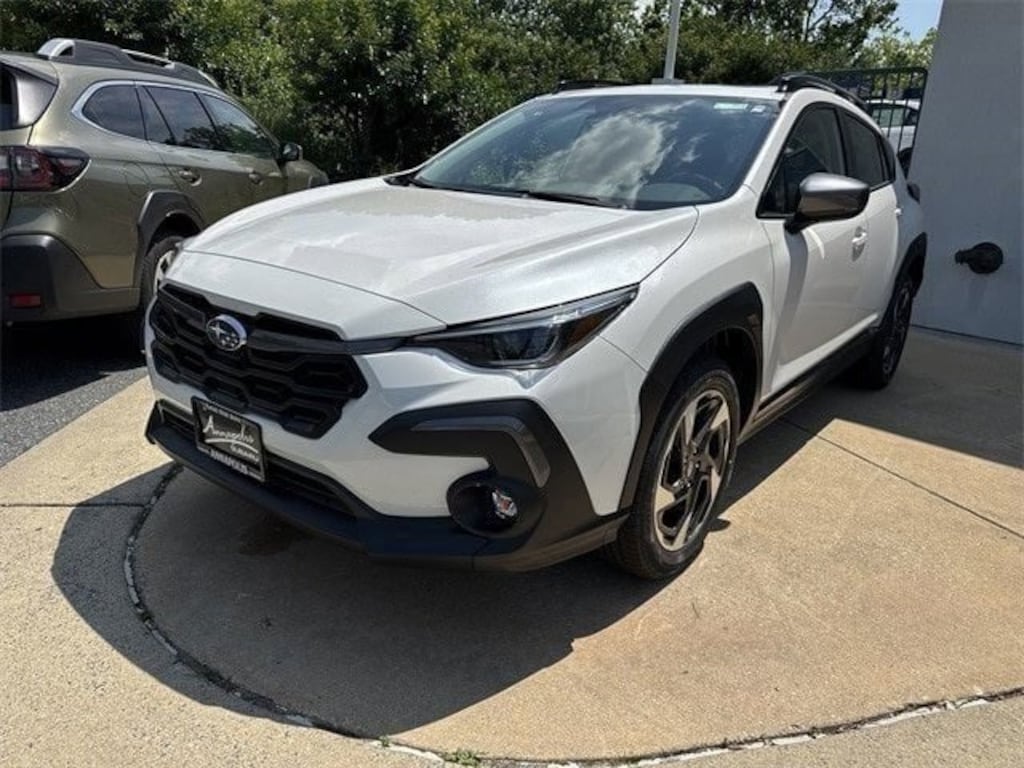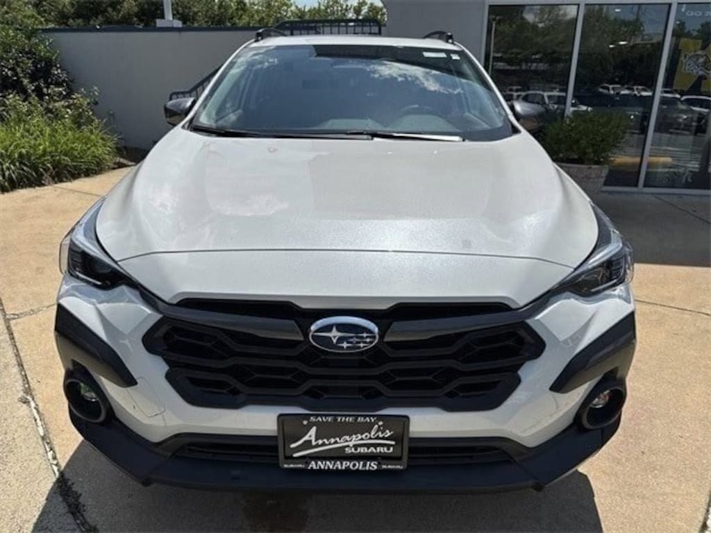 Here at Annapolis Subaru we have a brand new Crystal White Pearl on Black 2025 Subaru Crosstrek Limited for sale (see dealer for pricing). This Subaru has the 2.5L H-4 CVT automatic AWD REGULAR unleaded powertrain that returns 26 mpg city/29 mpg combined/33 mpg highway. The convenience features are 1-touch down, 1-touch up, Adaptive Cruise Control, air conditioning, auto-dimming rearview mirror, automatic temperature control, driver door bin, driver vanity mirror, emergency communication system with Star-Link Safety and Security (Subscription Required), front beverage holders, front dual zone A/C, garage door transmitter (Home-Link), illuminated entry, moonroof sunshade (manual), overhead console, passenger door bin, passenger vanity mirror, power moonroof, power windows, rear beverage holders, rear door bins, remote engine start with smart device only (subscription required), remote keyless entry, telescoping steering wheel and a tilt steering wheel. The suspension and handling features are alloy wheels, four wheel independent suspension, front and rear anti-roll bars, 225/55VR18.0 front and rear tires, power steering, speed-sensing steering and 18 inch wheels. The entertainment features are 1st row LCD monitors (2), AM/FM radio (Sirius XM), 11.6 inch primary LCD size screen, radio data system, satellite radio trial duration with new vehicle purchase of 4 months, smart device integration (Star-Link/Apple CarPlay/Android Auto), Harman/Kardon speakers (10), steering wheel mounted audio controls and wireless phone connectivity (Bluetooth). The warranties are 36 months/36,000miles for the basic warranty, 60 months/ unlimited mile distance for the corrosion perforation warranty, 60 months/60,000miles for the powertrain warranty and 36 months/36,000miles for the roadside assistance coverage. The seats and trim features are front bucket seats with a center armrest, heated front seats, leather shift knob, leather steering wheel, max seating capacity (5), power 2-way lumbar support, power driver seat, rear seat center armrest, rear split foldable bench seat and a leather seat upholstery. The off road capabilities are 18 degrees for the approach angle, 30 degrees for the departure angle, 8.7 inches for the ground clearance and 20 degrees for the ramp breakover angle. The body exterior features are auto-dimming door mirrors, body colored bumpers, heated/power/turn signal integrated door mirrors and a spoiler. This Crosstrek has a towing capacity of 1,500lbs. The lighting, visibility and instrumentation features are analog gauges, auto high-beam headlights, Blind Spot Detection (BSD) warning, compass, rear exterior parking camera, front fog lights, front reading lights, fully automatic headlights, lane departure (active EyeSight integrated Lane Keep Assist active), low tire pressure warning, outside temperature display, rear window defroster, rear window wiper, tachometer, trip computer and variably intermittent wipers. The safety and security features are 4 wheel disc brakes, ABS brakes, adjustable head restraints (driver and passenger w/tilt), anti-whiplash front head restraints, brake assist, dual front and side impact airbags, electronic stability, Eye-Sight integrated front Pre-Collision Braking mitigation, front pedestrian detection (prevention), ignition disable, knee airbag, occupant sensing airbag, overhead airbag, panic alarm, perimeter/approach lights, Reverse Automatic Braking (RAB) rear collision mitigation, security system, tracker system with Star-Link Safety and Security (Subscription Required) and traction control.