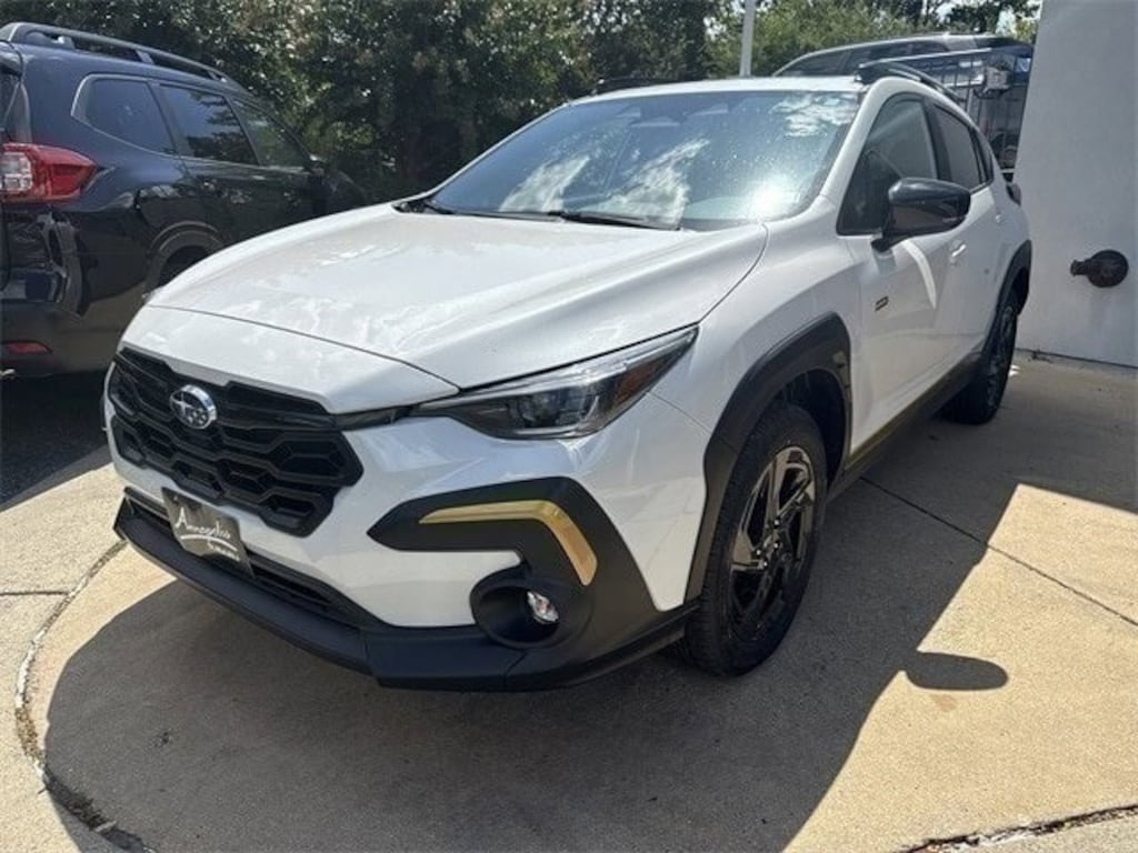 Here at Annapolis Subaru we have a brand new Crystal White Pearl on Gray 2025 Subaru Crosstrek Sport for sale (see dealer for pricing). This Subaru has the 2.5L H-4 CVT automatic AWD REGULAR unleaded powertrain that returns 27 mpg city/29 mpg combined/33 mpg highway. The convenience features are 1-touch down, 1-touch up, Adaptive Cruise Control, air conditioning, auto dimming rear view mirror, automatic temperature control, driver door bin, driver vanity mirror, emergency communication system with Star-Link Safety and Security (Subscription Required), front beverage holders, front dual zone A/C, garage door transmitter (HomeLink), illuminated entry, moonroof sunshade (manual), overhead console, passenger door bin, passenger vanity mirror, power moonroof, power windows, rear beverage holders, rear door bins, remote engine start with smart device only (subscription required), remote keyless entry, telescoping steering wheel and a tilt steering wheel. The suspension and handling features are alloy wheels, four wheel independent suspension, front and rear anti-roll bars, 225/55VR18.0 front and rear tires, power steering, speed-sensing steering and 18 inch wheels. The entertainment features are 1st row LCD monitors (2), AM/FM radio (Sirius XM), 11.6 inch primary LCD size screen, radio data system, satellite radio trial duration with new vehicle purchase of 4 months, smart device integration (Star-Link/Apple CarPlay/Android Auto), speakers (6), steering wheel mounted audio controls, wireless phone charger (front) and wireless phone connectivity (Bluetooth). The warranties are 36 months/36,000miles for the basic warranty, 60 months/ unlimited mile distance for the corrosion perforation warranty, 60 months/60,000miles for the powertrain warranty and 36 months/36,000miles for the roadside assistance coverage. The seats and trim features are front bucket seats with a center armrest, heated front seats, leather shift knob, leather steering wheel, max seating capacity (5), rear seat center armrest, rear split foldable bench seat and a cloth seat upholstery. The off road capabilities are 18 degrees for the approach angle, 30 degrees for the departure angle, 8.7 inches for the ground clearance and 20 degrees for the ramp breakover angle. The body exterior features are auto-dimming door mirrors, body colored bumpers, heated/power/turn signal integrated door mirrors and a spoiler. This Crosstrek has a towing capacity of 1,500lbs. The lighting, visibility and instrumentation features are analog gauges, auto high-beam headlights, compass, rear exterior parking camera, front fog lights, front reading lights, fully automatic headlights, lane departure (active EyeSight integrated Lane Keep Assist active), low tire pressure warning, outside temperature display, rear window defroster, rear window wiper, tachometer, trip computer and variably intermittent wipers. The safety and security features are 4 wheel disc brakes, ABS brakes, adjustable head restraints (driver and passenger w/tilt), anti-whiplash front head restraints, brake assist, dual front and side impact airbags, electronic stability, Eye-Sight integrated front Pre-Collision Braking mitigation, front pedestrian detection (prevention), ignition disable, knee airbag, occupant sensing airbag, overhead airbag, panic alarm, perimeter/approach lights, rear collision warning, security system, tracker system with Star-Link Safety and Security (Subscription Required) and traction control.