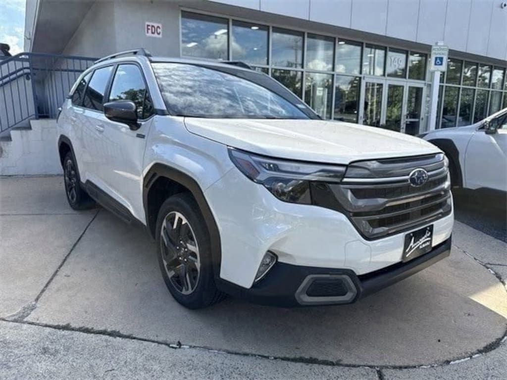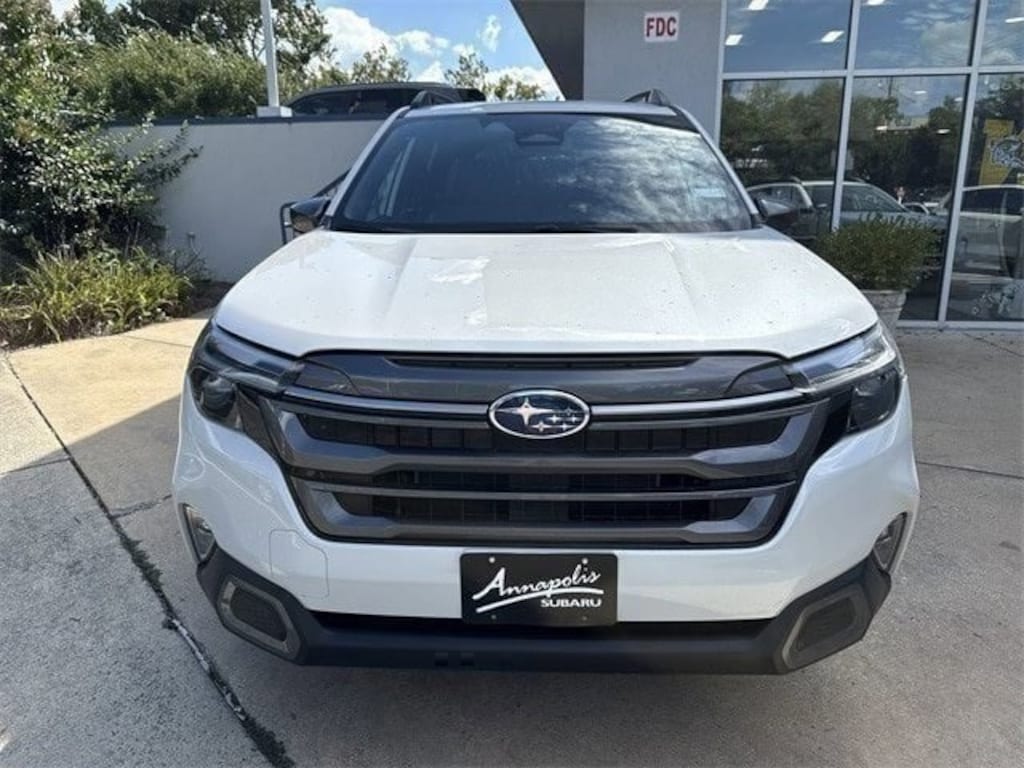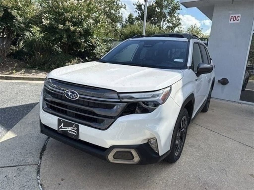 Here at Annapolis Subaru we have a brand new Crystal White Pearl on Gray 2025 Subaru Forester Hybrid Limited for sale (see dealer for pricing). This Subaru has the 2.5L H-4 CVT automatic AWD REGULAR unleaded Hybrid Electric Vehicle powertrain with a 1.1KWH traction battery that returns 35 mpg city/35 mpg combined/34 mpg highway. The convenience features are 1-touch down, 1-touch up, EyeSight Adaptive Cruise Control, air conditioning, auto-dimming rearview mirror, automatic temperature control, driver door bin, driver vanity mirror, emergency communication system Star-Link Safety and Security (Subscription Required), front beverage holders, front dual zone A/C, garage door transmitter (Home-Link), illuminated entry, moonroof sunshade (manual), navigation system, overhead console, passenger door bin, passenger vanity mirror, power moonroof, power windows, power/regenerative brakes, rear beverage holders, rear door bins, remote engine start with smart device only (subscription required), remote keyless entry, telescoping steering wheel, tilt steering wheel, traction battery level and a trunk/hatch auto latching feature. The suspension and handling features are alloy wheels, four wheel independent suspension, front and rear anti-roll bars, 225/55VR18.0 front and rear tires, power and speed-sensing steering and 18 inch wheels. The entertainment features are 1st row LCD monitors (2), AM/FM radio (Sirius XM), 11.6 inch primary LCD size screen, radio data system, satellite radio trial duration with new vehicle purchase of 4 months, smart device integration (Star-Link/Apple CarPlay/Android Auto), Harman/kardon speakers (11), steering wheel mounted audio controls, wireless phone charger (front) and wireless phone connectivity (Bluetooth). The warranties are 36 months/36,000miles for the basic warranty, 60 months/ unlimited mile distance for the corrosion perforation warranty, 96 months/100,000miles for the High voltage electrical system warranty, 60 months/60,000miles for the powertrain warranty and 36 months/36,000miles for the roadside assistance coverage. The seats and trim features are front bucket seats with a center armrest, heated front seats, max seating capacity (5), power 2-way driver lumbar support, power driver seat, power passenger seat, rear seat armrest, rear split foldable bench seat and a leatherette StarTex seat upholstery. The off road capabilities are 19 degrees for the approach angle, 25 degrees for the departure angle, 8.7 inches for the ground clearance and 19.6 degrees for the ramp breakover angle. The body exterior features are auto dimming door mirrors, body colored bumpers, heated/power/turn signal integrated door mirrors, spoiler, polished tailpipe finisher and trailer sway control. This Forester has a towing capacity of 1,500lbs. The lighting, visibility and instrumentation features are digital/analog gauges, auto high-beam headlights, Blind Spot Detection (BSD) warning, compass, rear exterior parking camera, front fog lights, front reading lights, fully automatic headlights, lane departure (active EyeSight integrated Lane Keep Assist active), low tire pressure warning, outside temperature display, rear window defroster, rear window wiper, tachometer, trip computer and variably intermittent wipers. The safety and security features are 4 wheel disc brakes, ABS brakes, adjustable head restraints (driver and passenger w/tilt), anti whiplash front head restraints, brake assist, dual front and side impact airbags, electronic stability, Eye-Sight integrated front Pre-Collision Braking mitigation, front pedestrian detection (prevention), ignition disable, knee airbag, occupant sensing airbag, overhead airbag, panic alarm, perimeter/approach lights, Reverse Automatic Braking (RAB) mitigation, security system, tracker system with Star-Link Safety and Security (Subscription Required) and traction control.