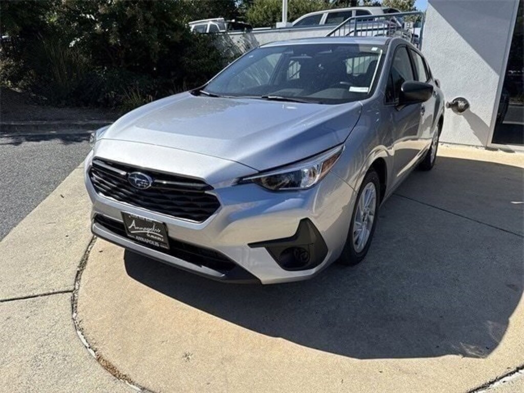 Here at Annapolis Subaru we have a brand new Ice Silver on Black 2025 Subaru Impreza base for sale (see dealer for pricing). This Subaru has the 2.0L H-4 CVT automatic AWD REGULAR unleaded powertrain that returns 27 mpg city/30 mpg combined/34 mpg highway. The convenience features are 1-touch down, 1-touch up, Adaptive Cruise Control, air conditioning, automatic temperature control, driver door bin, driver vanity mirror, front beverage holders, front dual zone A/C, illuminated entry, overhead console, passenger door bin, passenger vanity mirror, power windows, rear beverage holders, rear door bins, remote keyless entry, telescoping steering wheel and a tilt steering wheel. The suspension and handling features are alloy wheels, four wheel independent suspension, front and rear anti-roll bars, 205/55VR16.0 front and rear tires, power steering, speed-sensing steering and 16 inch wheels. The entertainment features are 1st row LCD monitors (3), AM/FM radio (Sirius XM), 7.0 inch primary LCD size screen, radio data system, satellite radio trial duration with new vehicle purchase of 4 months, smart device integration (Star-Link/Apple CarPlay/Android Auto), speakers (4), steering wheel mounted audio controls and wireless phone connectivity (Bluetooth). The warranties are 36 months/36,000miles for the basic warranty, 60 months/ unlimited mile distance for the corrosion perforation warranty, 60 months/60,000miles for the powertrain warranty and 36 months/36,000miles for the roadside assistance coverage. The seats and trim features are front bucket seats with a center armrest, max seating capacity (5), rear split foldable bench seat and a cloth seat upholstery. The body exterior features are body colored bumpers, power door mirrors and a spoiler. The lighting, visibility and instrumentation features are analog gauges, auto high-beam headlights, rear exterior parking camera, front reading lights, fully automatic headlights, lane departure (active EyeSight integrated Lane Keep Assist active), low tire pressure warning, outside temperature display, rear window defroster, rear window wiper, tachometer, trip computer and variably intermittent wipers. The safety and security features are 4 wheel disc brakes, ABS brakes, adjustable head restraints, brake assist, dual front and side impact airbags, electronic stability, Eye-Sight integrated front Pre-Collision Braking mitigation, front pedestrian detection (prevention), ignition disable, knee airbag, occupant sensing airbag, overhead airbag, panic alarm, perimeter/approach lights, security system and traction control.