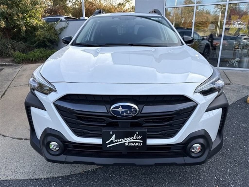 Here at Annapolis Subaru we have a brand new Crystal White Pearl on Black 2025 Subaru Outback Premium for sale (see dealer for pricing). This Subaru has the 2.5L H-4 CVT automatic AWD REGULAR unleaded powertrain that returns 26 mpg city/28 mpg combined/32 mpg highway. The convenience features are 1-touch down, 1-touch up, Adaptive Cruise Control, air conditioning, auto-dimming rearview mirror, automatic temperature control, driver door bin, driver vanity mirror, emergency communication system with Star-Link Safety Plus (3-year free trial), front beverage holders, front dual zone A/C, garage door transmitter (Home-Link), illuminated entry, moonroof sunshade (manual), navigation system, overhead console, passenger door bin, passenger vanity mirror, power moonroof, power windows, rear beverage holders, rear door bins, remote keyless entry, telescoping steering wheel, tilt steering wheel and a trunk/hatch with auto latching feature. The suspension and handling features are alloy wheels, four wheel independent suspension, front and rear anti-roll bars, 225/65HR17.0 front and rear tires, power steering, speed-sensing steering and 17 inch wheels. The entertainment features are 1st row LCD monitors (2), AM/FM radio (Sirius XM), 11.6 inch primary LCD size screen, satellite radio trial duration with new vehicle purchase of 4 months, smart device integration (Star-Link/Apple CarPlay/Android Auto), speakers (6), steering wheel mounted audio controls and wireless phone connectivity (Bluetooth). The warranties are 36 months/36,000miles for the basic warranty, 60 months/ unlimited mile distance for the corrosion perforation warranty, 60 months/60,000miles for the powertrain warranty and 36 months/36,000miles for the roadside assistance coverage. The seats and trim features are front bucket seats with a center armrest and storage, heated front seats, leather shift knob, leather steering wheel, max seating capacity (5), power 2-way driver lumbar support, power driver seat, rear seat center armrest, rear split foldable bench seat and a cloth seat upholstery. The off road capabilities are 18 degrees for the approach angle, 22 degrees for the departure angle, 8.7 inches for the ground clearance and 19 degrees ramp breakover angle. The body exterior features are auto dimming door mirrors, body colored bumpers, heat/power/turn signal integrated door mirrors, roof rack and a spoiler. This Outback has a towing capacity of 2,700lbs. The lighting, visibility and instrumentation features are analog gauges, auto high-beam headlights, Blind Spot Detection (BSD) warning, compass, rear exterior parking camera, front fog lights, front reading lights, fully automatic headlights, lane departure (active EyeSight integrated Lane Keep Assist active), low tire pressure warning, outside temperature display, rear window defroster, rear window wiper, tachometer, trip computer and variably intermittent wipers. The safety and security features are 4 wheel disc brakes, ABS brakes, adjustable head restraints (driver and passenger w/tilt), brake assist, dual front and side impact airbags, electronic stability, Eye-Sight integrated front Pre-Collision Braking mitigation, front pedestrian detection (prevention), ignition disable, knee airbag, occupant sensing airbag, overhead airbag, panic alarm, perimeter/approach lights, Rear Cross Traffic Alert (RCTA) warning, security system, tracker system with integrated Star-Link Security Plus (6-months free trial) and traction control.