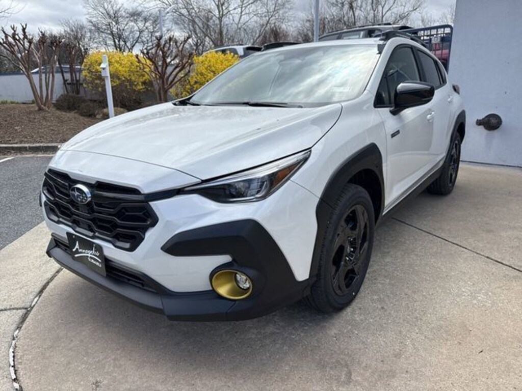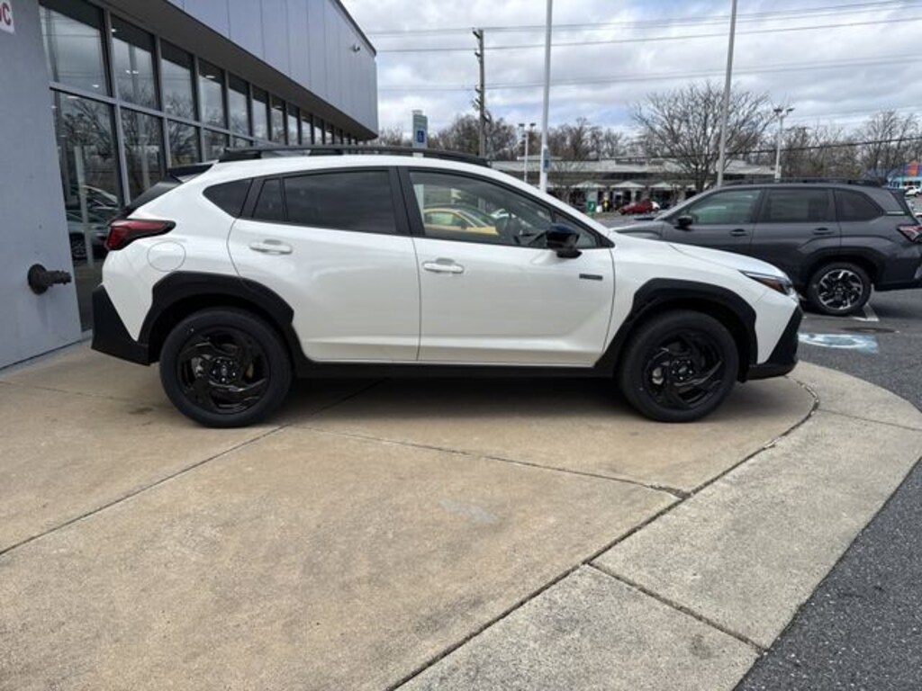 Here at Annapolis Subaru we have a brand new Crystal White Pearl on Gray 2026 Subaru Crosstrek Hybrid Sport for sale (see dealer for pricing). This Subaru has the 2.5L H-4 CVT automatic AWD REGULAR unleaded Hybrid Electric Vehicle powertrain with a 1.1KWH traction battery that returns 36 mpg city/36 mpg combined/36 mpg highway. The convenience features are 1-touch down, 1-touch up, EyeSight Adaptive Cruise Control, air conditioning, auto-dimming rearview mirror, automatic temperature control, driver door bin, driver vanity mirror, emergency communication system MySubaru Companion (5-years free), front beverage holders, front dual zone A/C, garage door transmitter (Home-Link), illuminated entry, moonroof sunshade (manual), navigation system, overhead console, passenger door bin, passenger vanity mirror, power moonroof, power windows, power/regenerative brakes, rear beverage holders, rear door bins, remote keyless entry, telescoping steering wheel, tilt steering wheel, traction battery level and a traction battery temperature gauge. The suspension and handling features are alloy wheels, four wheel independent suspension, front and rear anti-roll bars, 225/55VR18.0 front and rear tires, power and speed-sensing steering and 18 inch wheels. The entertainment features are 1st row LCD monitors (2), AM/FM radio (Sirius XM), 11.6 inch primary LCD size screen, radio data system, satellite radio trial duration with new vehicle purchase of 4 months, smart device integration (Star-Link/Apple CarPlay/Android Auto), speakers (6), steering wheel mounted audio controls, wireless phone charger (front) and wireless phone connectivity (Bluetooth). The warranties are 36 months/36,000miles for the basic warranty, 60 months/ unlimited mile distance for the corrosion perforation warranty, 96 months/100,000miles for the High voltage electrical system warranty, 60 months/60,000miles for the powertrain warranty and 36 months/36,000miles for the roadside assistance coverage. The seats and trim features are front bucket seats with a center armrest, heated front seats, leather steering wheel, max seating capacity (5), power 2-way driver lumbar support, power driver seat, rear seat armrest, rear split foldable bench seat and a cloth seat upholstery. The off road capabilities are 18 degrees for the approach angle, 30 degrees for the departure angle, 8.7 inches for the ground clearance and 19 degrees for the ramp breakover angle. The body exterior features are auto dimming door mirrors, body colored bumpers, heated/power/turn signal integrated door mirrors and a spoiler. This Crosstrek has a towing capacity of 1,500lbs. The lighting, visibility and instrumentation features are digital/analog gauges, auto high-beam headlights, Blind Spot Detection (BSD) warning, compass, configurable, rear exterior parking camera, front fog lights, front reading lights, fully automatic headlights, lane departure (active EyeSight integrated Lane Keep Assist), low tire pressure warning, outside temperature display, rear window defroster, rear window wiper, tachometer, trip computer and variably intermittent wipers. The safety and security features are 4 wheel disc brakes, ABS brakes, adjustable head restraints (driver and passenger w/tilt), anti whiplash front head restraints, brake assist, dual front and side impact airbags, electronic stability, Eye-Sight integrated front Pre-Collision Braking mitigation, front pedestrian detection (prevention), ignition disable, knee airbag, occupant sensing airbag, overhead airbag, panic alarm, perimeter/approach lights, Rear Cross Traffic Alert (RCTA) warning, security system, tracker system with MySubaru Companion (5-years free) and traction control.
