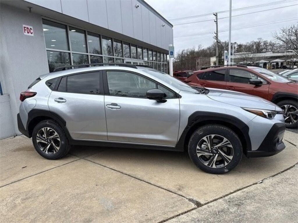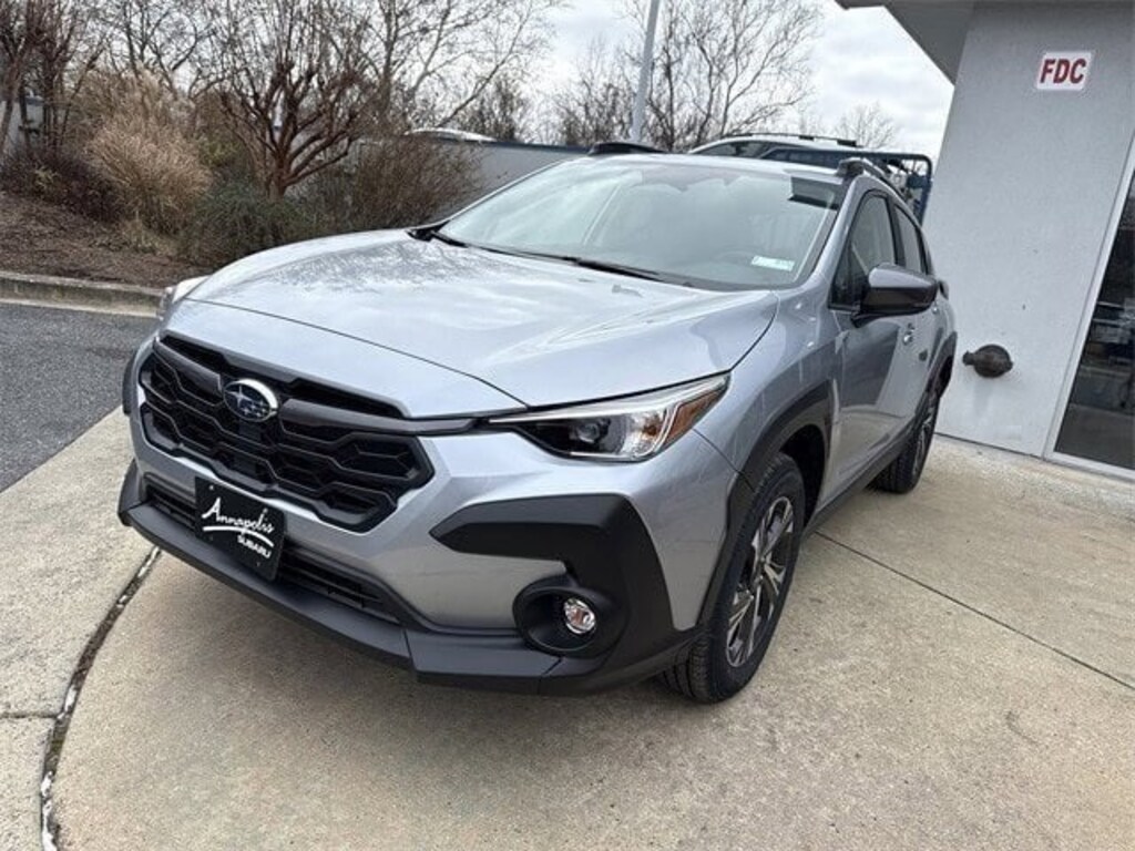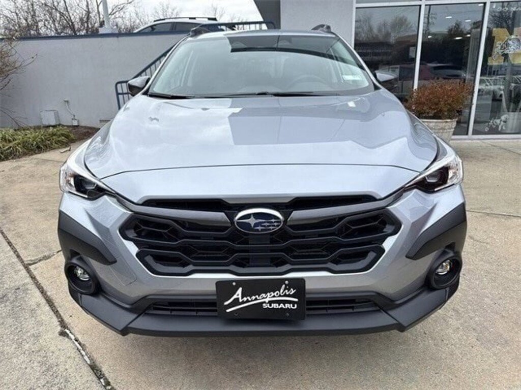 Here at Annapolis Subaru we have a brand new Ice Silver on Black 2025 Subaru Crosstrek Premium for sale (see dealer for pricing). This Subaru has the 2.5L H-4 CVT automatic AWD REGULAR unleaded powertrain that returns 27 mpg city/29 mpg combined/33 mpg highway. The convenience features are 1-touch down, 1-touch up, Adaptive Cruise Control, air conditioning, automatic temperature control, driver door bin, driver vanity mirror, front beverage holders, front dual zone A/C, garage door transmitter (Home-Link), illuminated entry, overhead console, passenger door bin, passenger vanity mirror, power windows, rear beverage holders, rear door bins, remote keyless entry, telescoping steering wheel and a tilt steering wheel. The suspension and handling features are alloy wheels, four wheel independent suspension, front and rear anti-roll bars, 225/60HR17.0 front and rear tires, power steering, speed-sensing steering and 17 inch wheels. The entertainment features are 1st row LCD monitors (2), AM/FM radio (Sirius XM), 11.6 inch primary LCD size screen, radio data system, satellite radio trial duration with new vehicle purchase of 4 months, smart device integration (Star-Link/Apple CarPlay/Android Auto), speakers (6), steering wheel mounted audio controls and wireless phone connectivity (Bluetooth). The warranties are 36 months/36,000miles for the basic warranty, 60 months/ unlimited mile distance for the corrosion perforation warranty, 60 months/60,000miles for the powertrain warranty and 36 months/36,000miles for the roadside assistance coverage. The seats and trim features are front bucket seats with a center armrest, max seating capacity (5), rear split foldable bench seat with center armrest and a cloth seat upholstery. The off road capabilities are 18 degrees for the approach angle, 30 degrees for the departure angle, 8.7 inches for the ground clearance and 20 degrees for the ramp breakover angle. The body exterior features are body colored bumpers, power/auto dimming/turn signal integrated door mirrors and a spoiler. This Crosstrek has a towing capacity of 1,500lbs. The lighting, visibility and instrumentation features are analog gauges, auto high-beam headlights, compass, rear exterior parking camera, front fog lights, front reading lights, fully automatic headlights, lane departure (active EyeSight integrated Lane Keep Assist active), low tire pressure warning, outside temperature display, rear window defroster, rear window wiper, tachometer, trip computer and variably intermittent wipers. The safety and security features are 4 wheel disc brakes, ABS brakes, adjustable head restraints (driver and passenger w/tilt), anti-whiplash front head restraints, brake assist, dual front and side impact airbags, electronic stability, Eye-Sight integrated front Pre-Collision Braking mitigation, front pedestrian detection (prevention), ignition disable, knee airbag, occupant sensing airbag, overhead airbag, panic alarm, perimeter/approach lights, rear side impact airbag, security system, tracker system with MySubaru Companion (5-years free) and traction control.