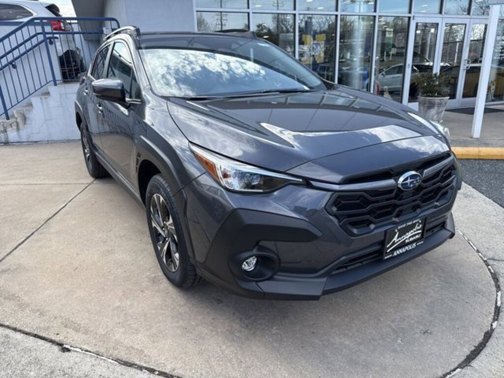 Here at Annapolis Subaru we have a brand new Magnetite Gray on Gray 2026 Subaru Crosstrek Premium for sale (see dealer for pricing). This Subaru has the 2.5L H-4 CVT automatic AWD REGULAR unleaded powertrain that returns 27 mpg city/29 mpg combined/33 mpg highway. The convenience features are 1-touch down, 1-touch up, Adaptive Cruise Control, air conditioning, automatic temperature control, driver door bin, driver vanity mirror, emergency communication system with MySubaru Companion (5-years free), front beverage holders, front dual zone A/C, garage door transmitter (Home-Link), illuminated entry, moonroof sunshade (manual), overhead console, passenger door bin, passenger vanity mirror, power moonroof, power windows, rear beverage holders, rear door bins, remote keyless entry, telescoping steering wheel and a tilt steering wheel. The suspension and handling features are alloy wheels, four wheel independent suspension, front and rear anti-roll bars, 225/60HR17.0 front and rear tires, power steering, speed-sensing steering and 17 inch wheels. The entertainment features are 1st row LCD monitors (3), AM/FM radio (Sirius XM), 11.6 inch primary LCD size screen, radio data system, satellite radio trial duration with new vehicle purchase of 4 months, smart device integration (Star-Link/Apple CarPlay/Android Auto), speakers (6), steering wheel mounted audio controls and wireless phone connectivity (Bluetooth). The warranties are 36 months/36,000miles for the basic warranty, 60 months/ unlimited mile distance for the corrosion perforation warranty, 60 months/60,000miles for the powertrain warranty and 36 months/36,000miles for the roadside assistance coverage. The seats and trim features are front bucket seats with a center armrest, max seating capacity (5), power 2-way driver lumbar support, power driver seat