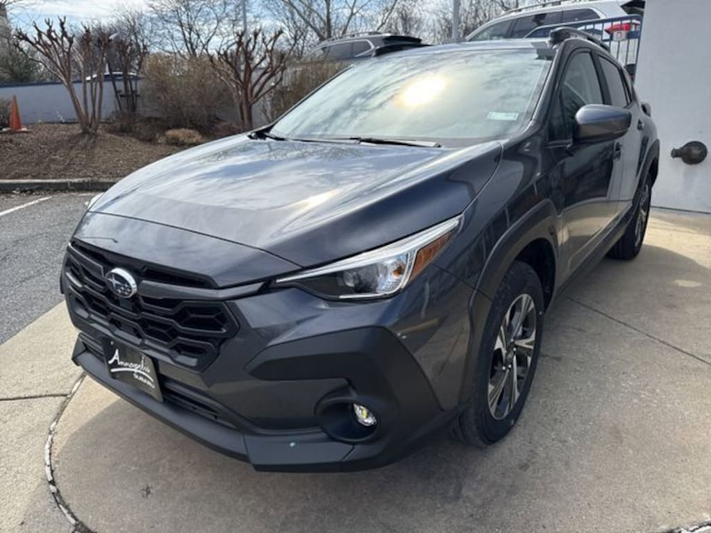 Here at Annapolis Subaru we have a brand new Magnetite Gray on Black 2026 Subaru Crosstrek Premium for sale (see dealer for pricing). This Subaru has the 2.5L H-4 CVT automatic AWD REGULAR unleaded powertrain that returns 27 mpg city/29 mpg combined/33 mpg highway. The convenience features are 1-touch down, 1-touch up, Adaptive Cruise Control, air conditioning, automatic temperature control, driver door bin, driver vanity mirror, emergency communication system with MySubaru Companion (5-years free), front beverage holders, front dual zone A/C, garage door transmitter (Home-Link), illuminated entry, moonroof sunshade (manual), overhead console, passenger door bin, passenger vanity mirror, power moonroof, power windows, rear beverage holders, rear door bins, remote keyless entry, telescoping steering wheel and a tilt steering wheel. The suspension and handling features are alloy wheels, four wheel independent suspension, front and rear anti-roll bars, 225/60HR17.0 front and rear tires, power steering, speed-sensing steering and 17 inch wheels. The entertainment features are 1st row LCD monitors (3), AM/FM radio (Sirius XM), 11.6 inch primary LCD size screen, radio data system, satellite radio trial duration with new vehicle purchase of 4 months, smart device integration (Star-Link/Apple CarPlay/Android Auto), speakers (6), steering wheel mounted audio controls and wireless phone connectivity (Bluetooth). The warranties are 36 months/36,000miles for the basic warranty, 60 months/ unlimited mile distance for the corrosion perforation warranty, 60 months/60,000miles for the powertrain warranty and 36 months/36,000miles for the roadside assistance coverage. The seats and trim features are front bucket seats with a center armrest, max seating capacity (5), power 2-way driver lumbar support, power driver seat