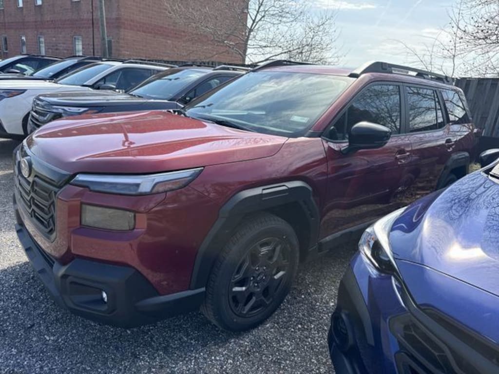 Here at Annapolis Subaru we have a brand new Crimson Red Pearl on Black 2026 Subaru Outback Premium for sale (see dealer for pricing). This Subaru has a 2.4L H-4 CVT AWD REGULAR unleaded powertrain that returns 25 mpg city/27 mpg combined/31 mpg highway. The convenience features are 1-touch down, 1-touch up, EyeSight Adaptive Cruise Control, air conditioning, auto-dimming rearview mirror, automatic temperature control, driver door bin, driver vanity mirror, emergency communication system with MySubaru Companion (5-years free), front beverage holders, front dual zone A/C, garage door transmitter (Home-Link), HVAC memory, heated steering wheel, illuminated entry, memory seat, moonroof sunshade (manual), navigation system, overhead console, passenger door bin, passenger vanity mirror, power moonroof, power windows, rear air conditioning, rear beverage holders, rear door bins, remote keyless entry, telescoping steering wheel, tilt steering wheel and a trunk/hatch with an auto latching feature. The suspension and handling features are alloy wheels, four wheel independent suspension, front and rear anti-roll bars, 225/60HR18.0 front and rear tires, power and speed sensing steering and 18 inch wheels. The entertainment features are 1st row LCD monitors (2), AM/FM radio (Sirius XM), 12.1 inch primary LCD size screen, radio data system, satellite radio trial duration with new vehicle purchase of 4 months, smart device integration (Star-Link/Apple CarPlay/Android Auto), speakers (6), steering wheel mounted audio controls, wireless phone charger (front) and wireless phone connectivity (Bluetooth). The warranties are 36 months/36,000miles for the basic warranty, 60 months/ unlimited mile distance for the corrosion perforation warranty, 60 months/60,000miles for the powertrain warranty and 36 months/36,000miles for the roadside assistance coverage warranty. The seats and trim features are front bucket seats with a center armrest, heated front seats, leather steering wheel, max seating capacity (5), power 2-way driver lumbar support, power driver seat, rear split foldable bench seat and a leatherette StarTex seat upholstery. The off road features are 18 degrees for the approach angle, 21 degrees for the departure angle, 8.7 inches for the ground clearance and 19.4 degrees for the ramp breakover angle. The body exterior features are auto dimming door mirrors, body colored bumpers, heated/power/turn signal integrated door mirrors and spoiler. This Outback has a towing capacity of 2,700lbs. The lighting, visibility and instrumentation features are digital/analog gauges, auto high-beam headlights, Blind Spot Detection (BSD) warning, compass, configurable, right exterior parking camera, front fog lights, front reading lights, fully automatic headlights, lane departure (Lane Keep Assist active), low tire pressure warning, outside temperature display, parking sensors (rear), rain sensing wipers, rear window defroster, rear window wiper, tachometer, traffic sign info, trip computer and variably intermittent wipers. The safety and security features are 4 wheel disc brakes, ABS brakes, anti-whiplash front head restraints, dual front and side impact airbags, brake assist, electronic stability, Eye-Sight integrated front Pre-Collision Braking mitigation, front pedestrian detection (prevention), ignition disable, knee airbag, occupant sensing airbag, overhead airbag, panic alarm, perimeter/approach lights, Rear Cross Traffic Alert (RCTA)/Reverse Automatic Braking (RAB) mitigation, security system, tracker system with MySubaru Companion (5-years free) and traction control.